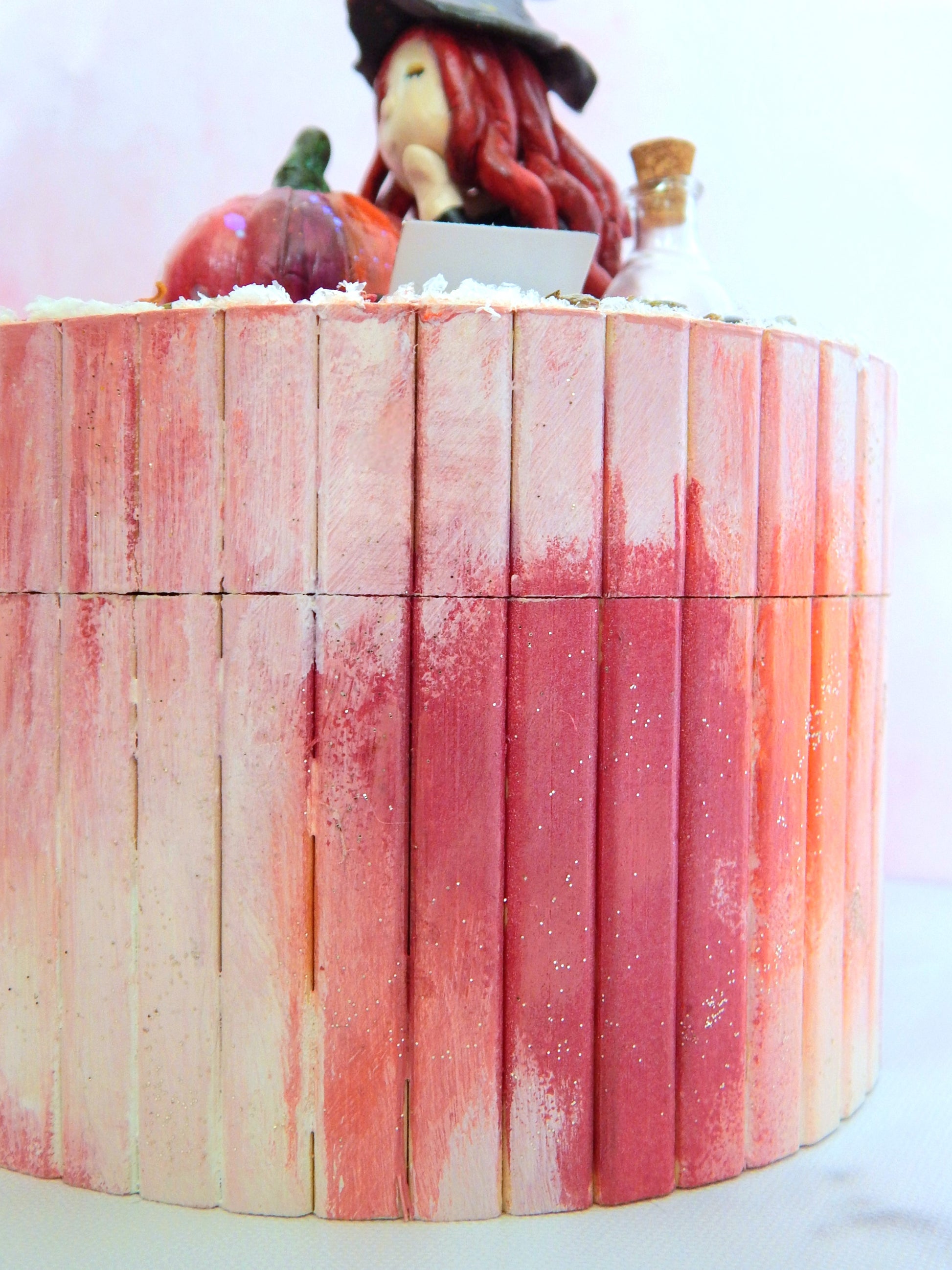Boîte décorée et pensée comme un véritable autel miniature, empreinte de douceur, de magie et d'intentions. Peinte dans des nuances chaleureuses de rose, orange et blanc, cette boîte en bois évoque les couleurs d'un crépuscule d'automne agrémenté de fines paillettes dorées. Vous y retrouverez la petite sorcière Aurore, étudiant les sorts et les potions dans son cercle de protection. Autour d'elle, feuille de rose, jasmin, brin de lavande, anis étoilé, pentagramme, labradorite et obsidienne pour accomplir ses rituels et sa citrouille quand son ventre gargouille.