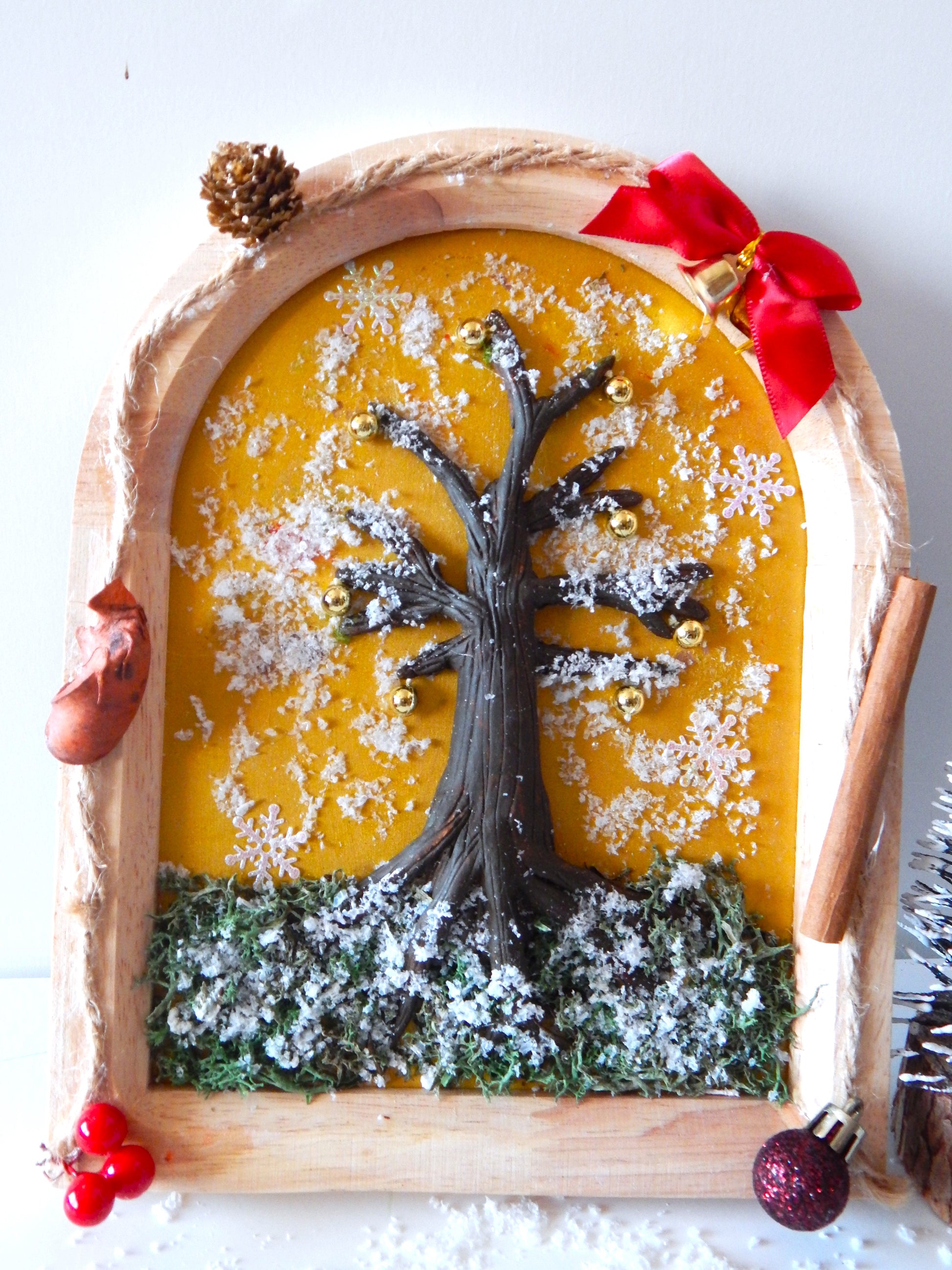 Magnifique cadre Hivernal. Cet arbre est un gardien de lumière et de renouveau, un rappel que même au cœur de la nuit la plus longue, la promesse d’un retour à la vie demeure. Relié à Yule, il incarne la renaissance du soleil, le moment sacré où la lumière commence à croître à nouveau. Les éclats dorés, la neige et les ornements symbolisent la chaleur que l’on nourrit au milieu de l’hiver : l’espoir, la protection et la magie du foyer. Ce cadre invite à célébrer le solstice d'hiver, à honorer la force intérieure qui nous guide à travers l’obscurité et à accueillir le recommencement qui s’annonce.