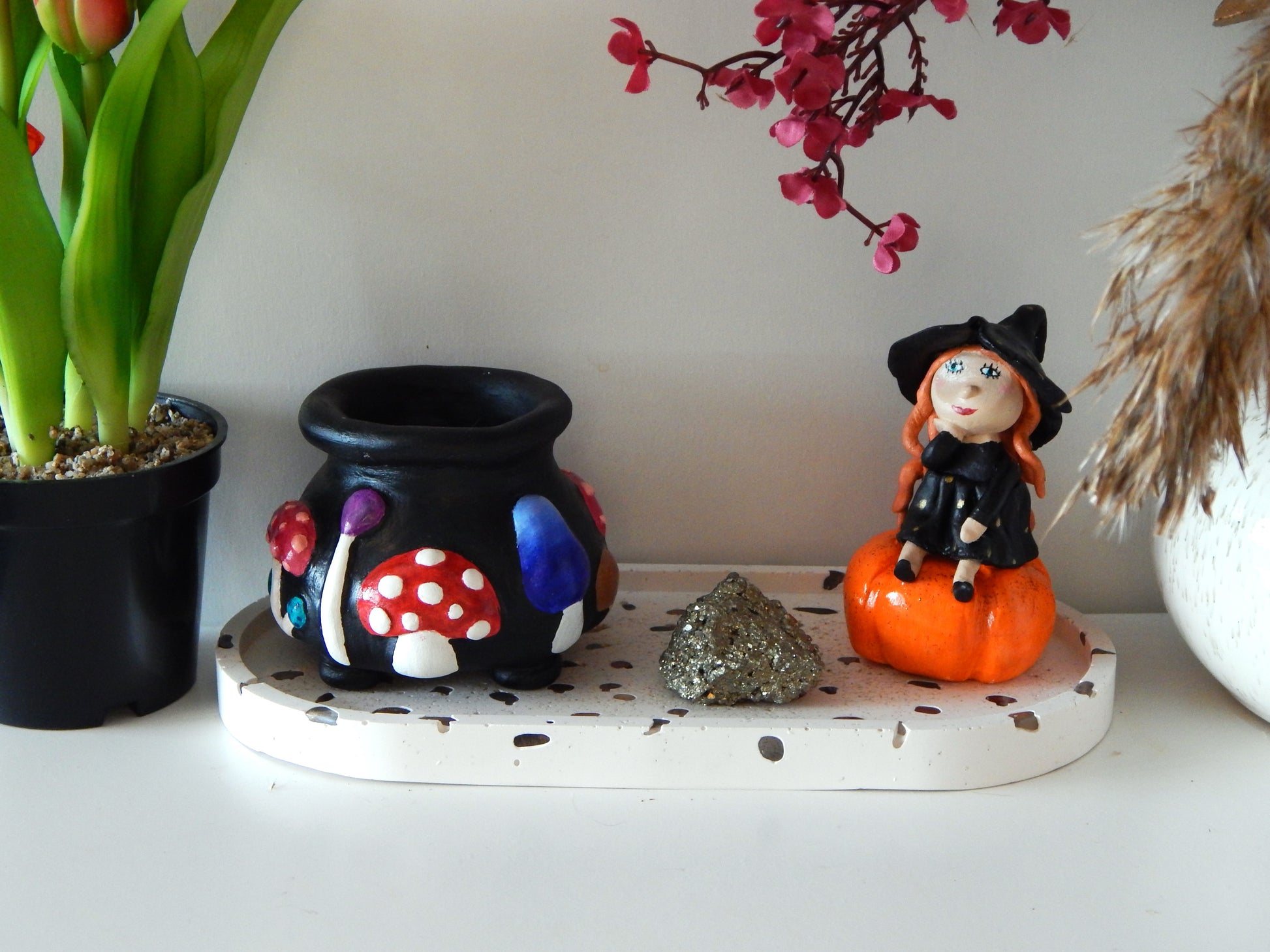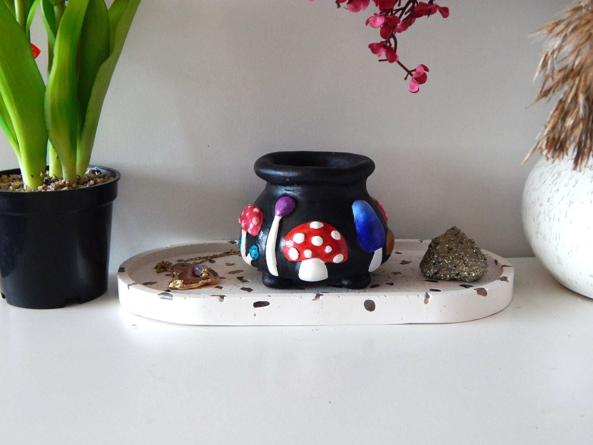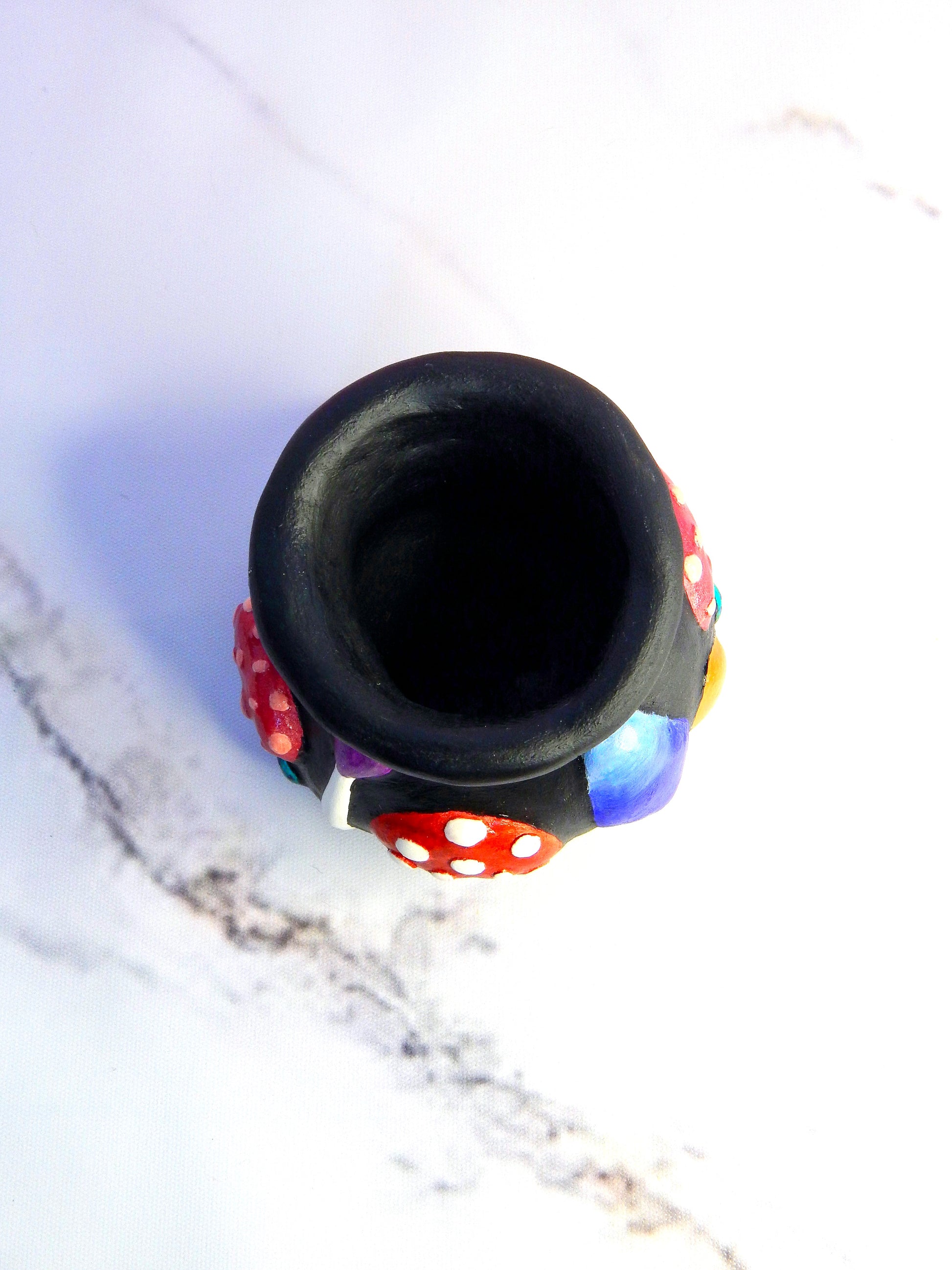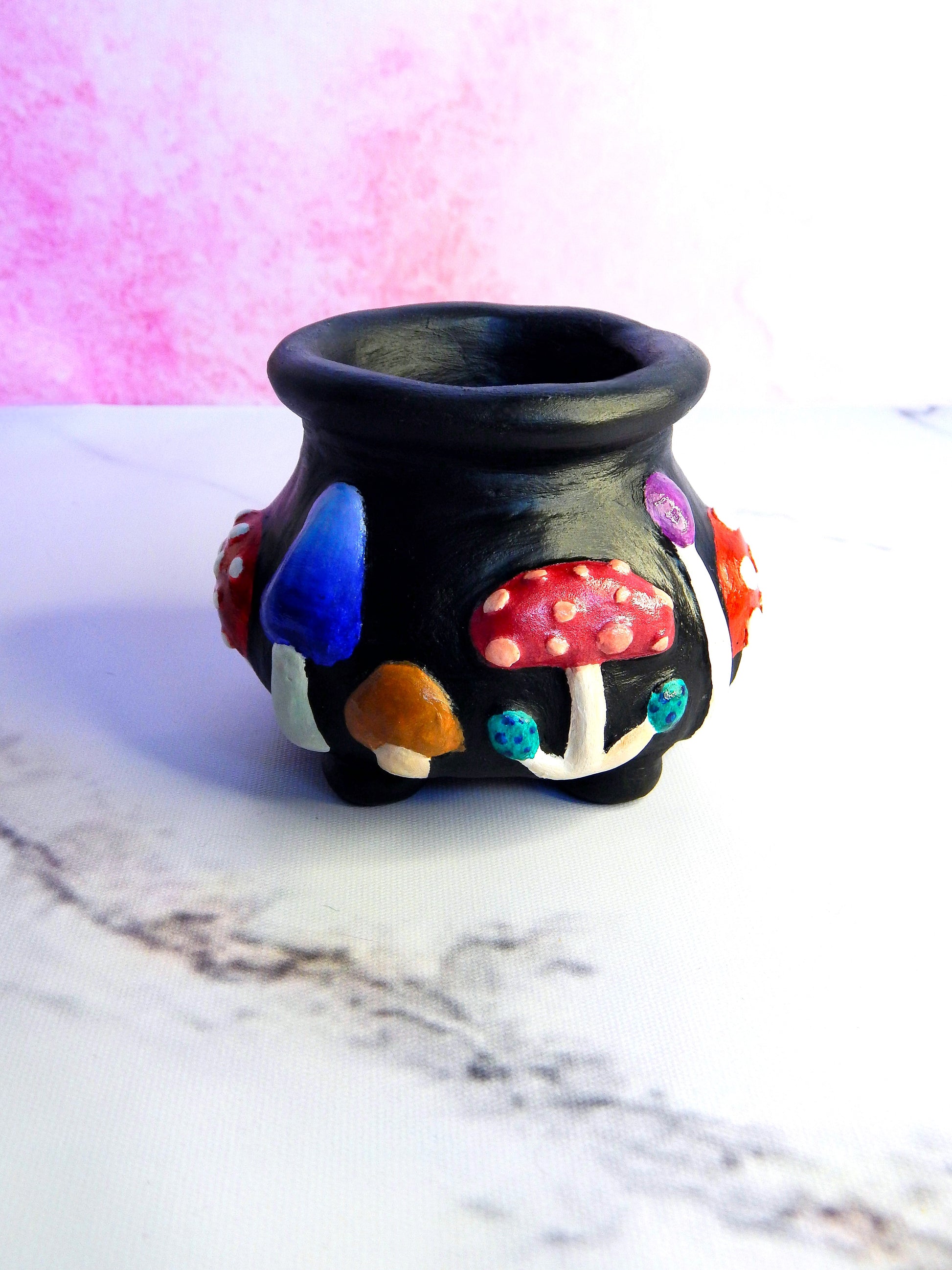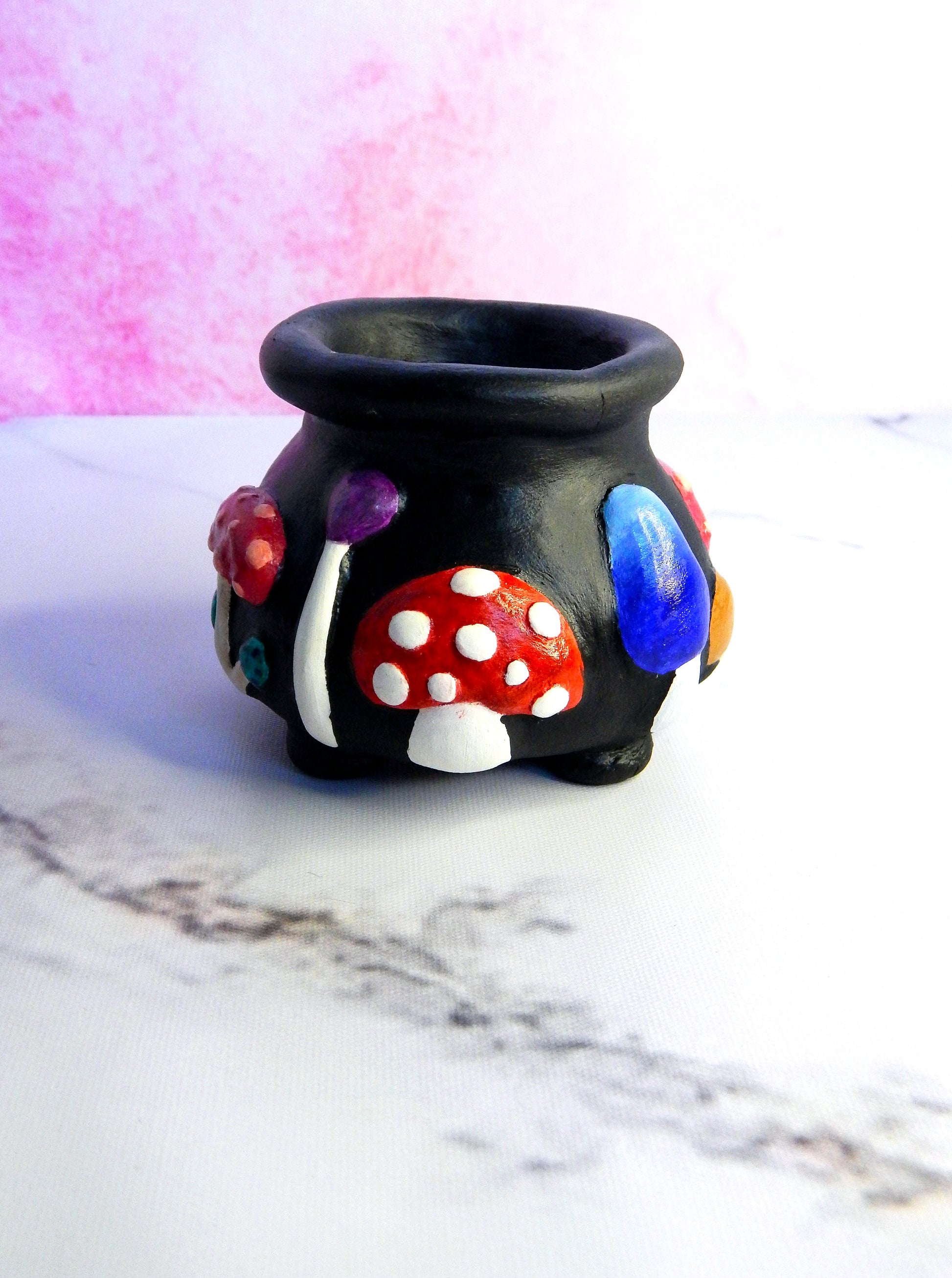 Petit chaudron champignons décoratif façonné et peint à la main. Il saura ravir vos papilles...