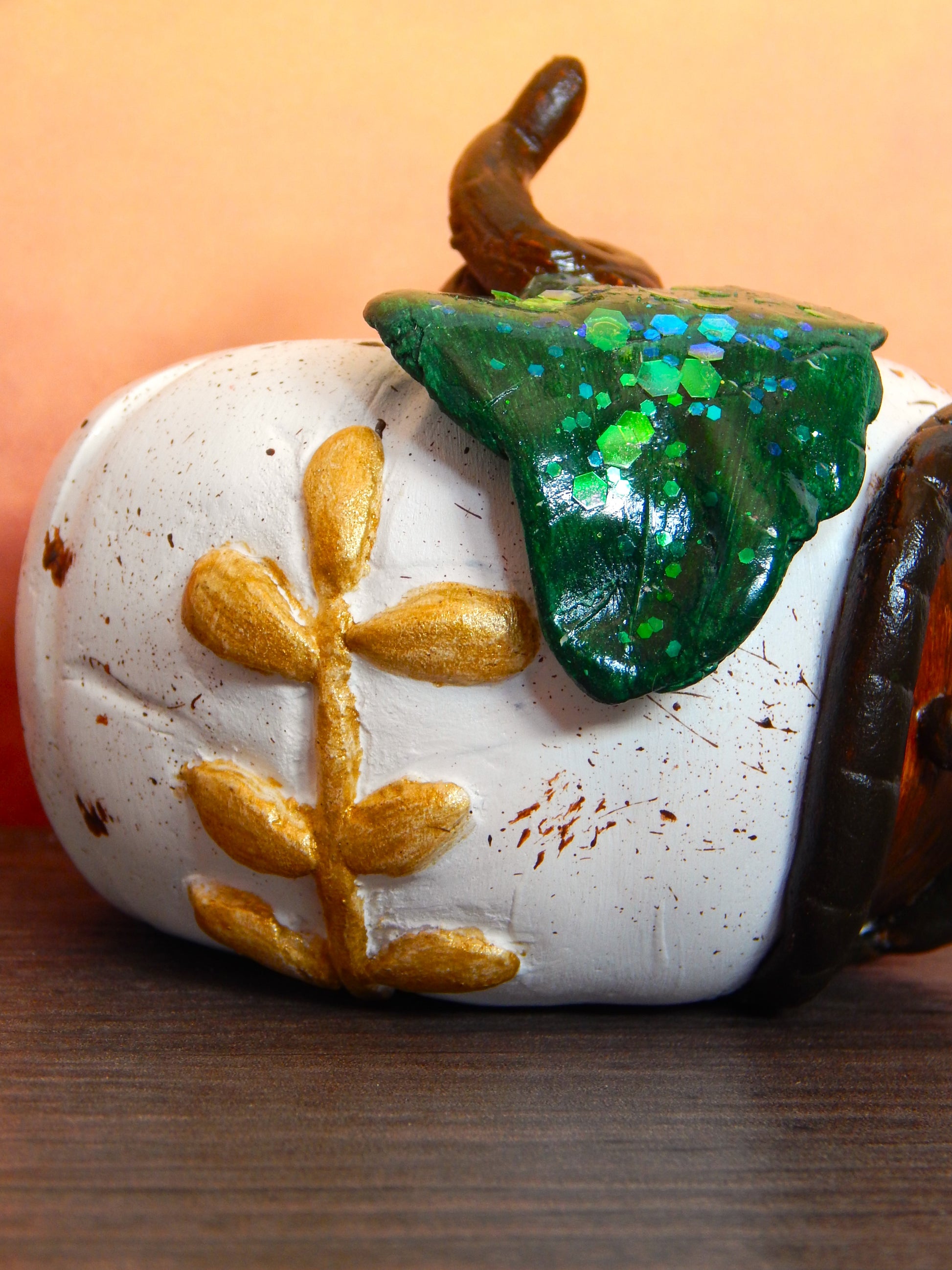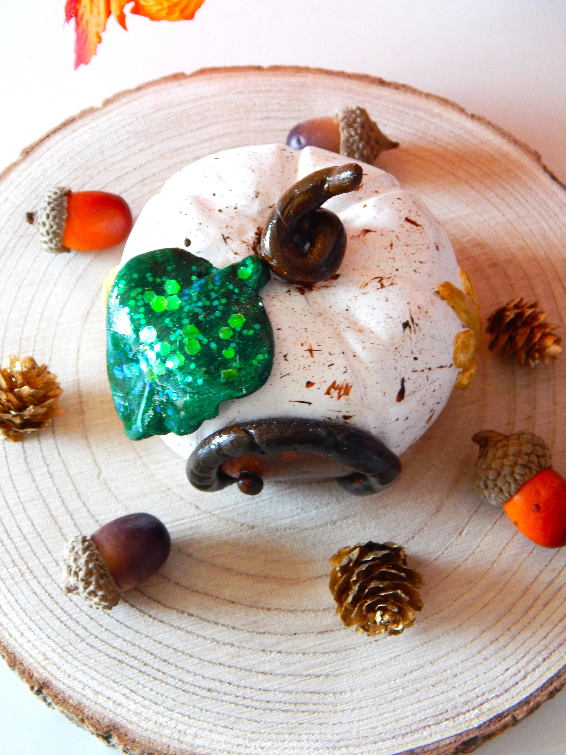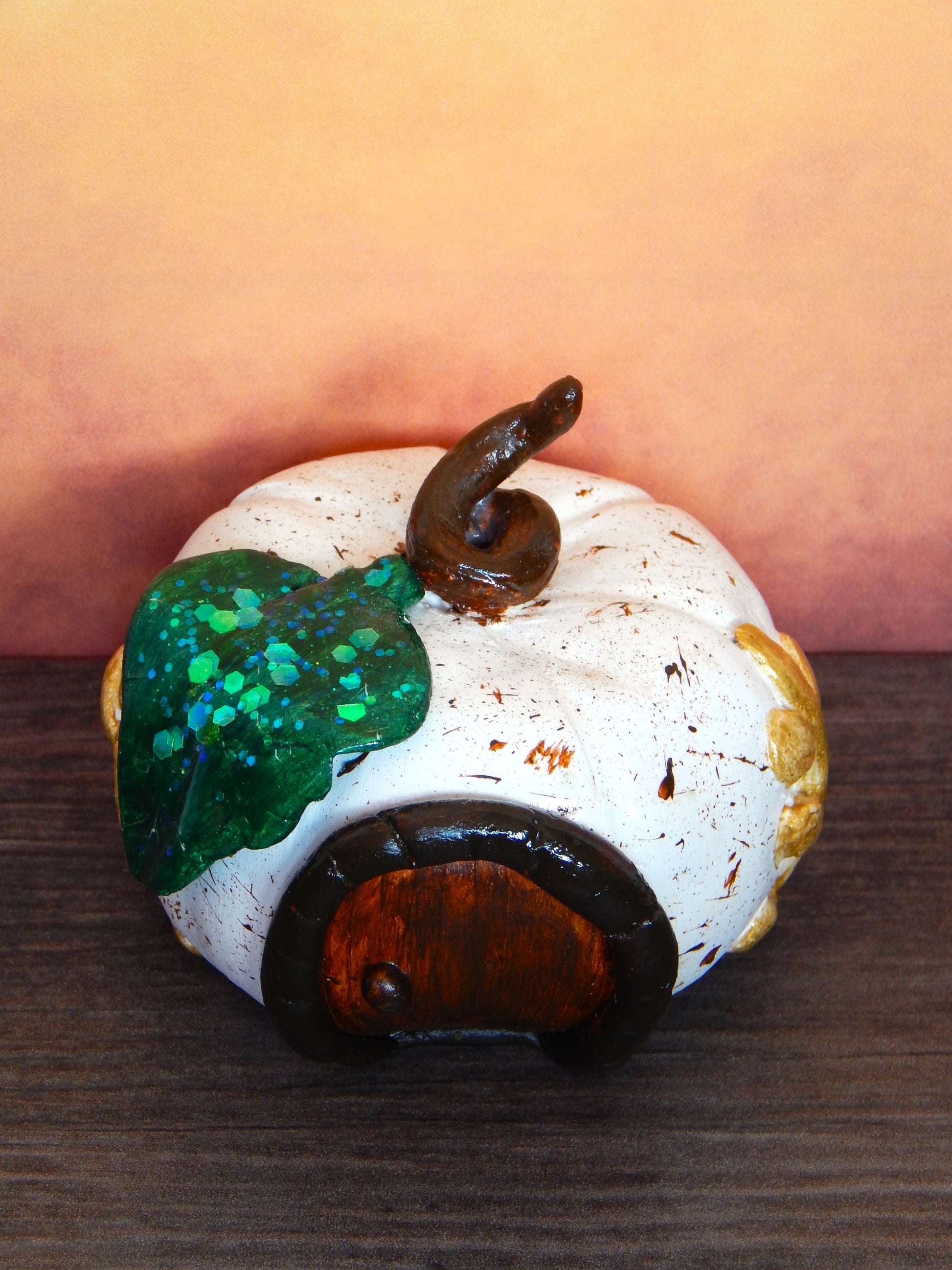 En se promenant dans les bois, on peut parfois tomber sur des cabanes enchantées. Celle-ci, en forme de citrouille, est élégante et raffinée avec sa feuille verte pailletée. Elle trouvera parfaitement sa place dans votre intérieur, qu'il soit moderne ou boisé.