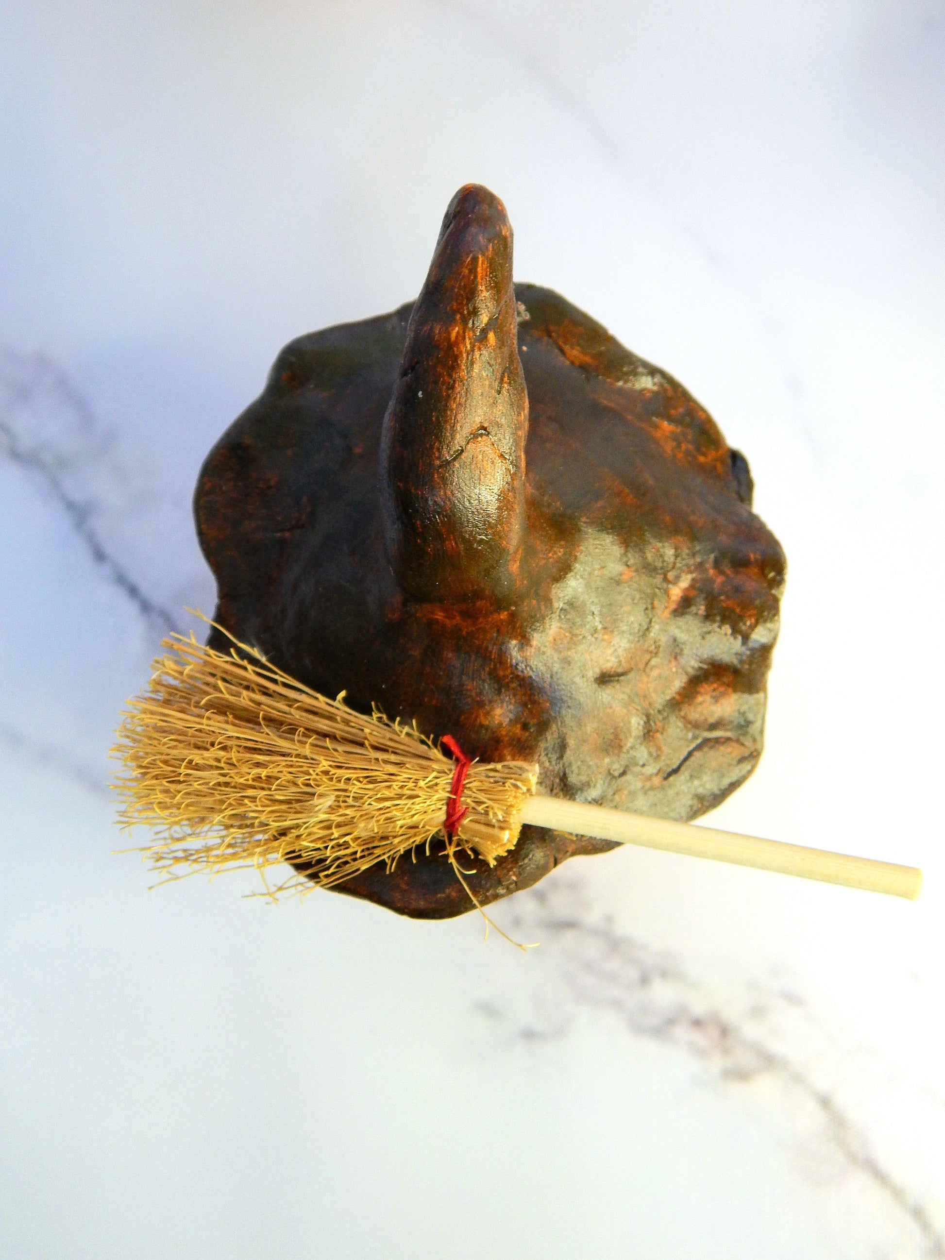 Petite citrouille de sorcière faite à la main. Vêtues de leur plus beau chapeau et accompagnées de leur fidèle balais, chaque citrouille est unique pour une âme 100% artisanale.