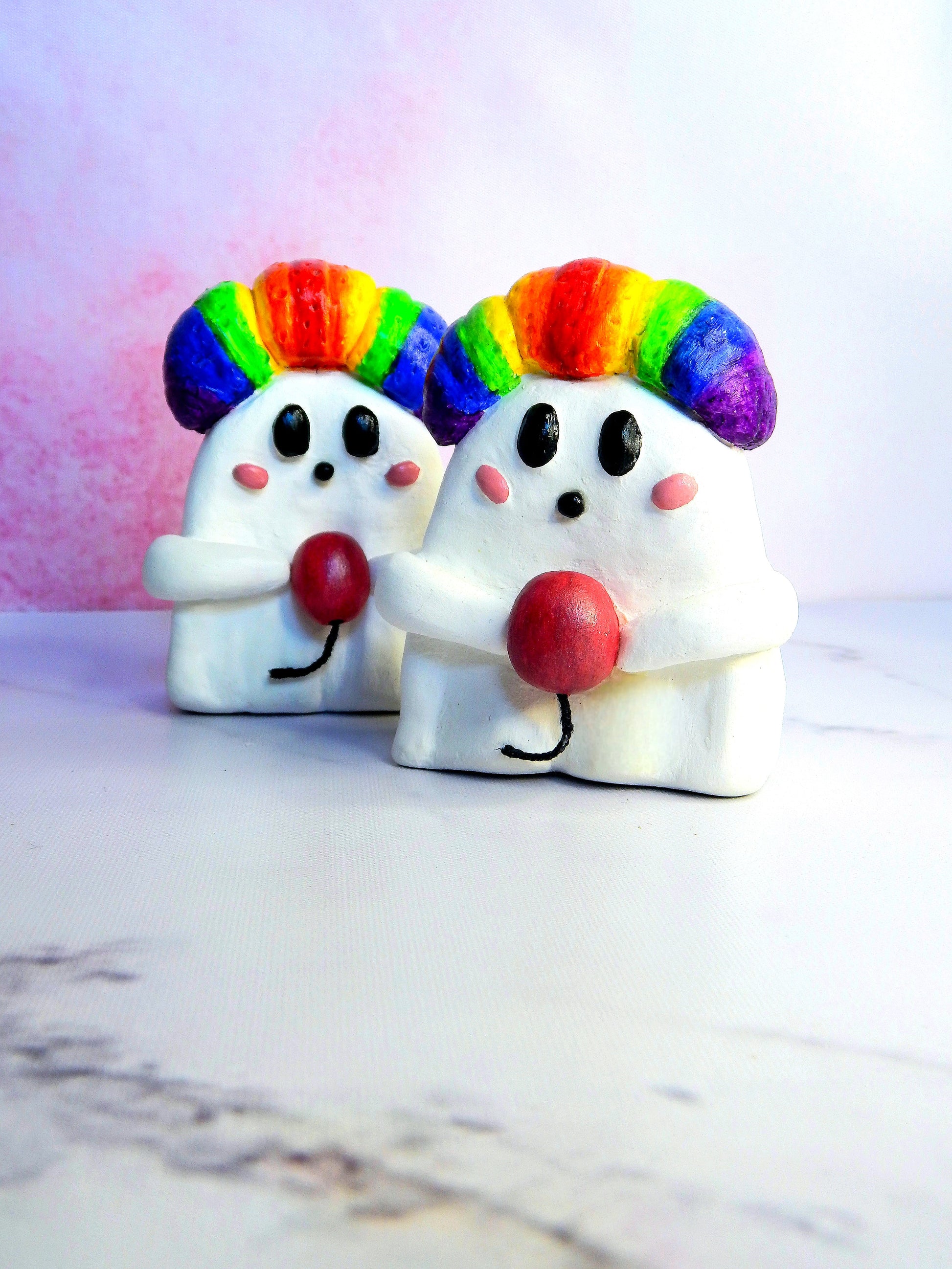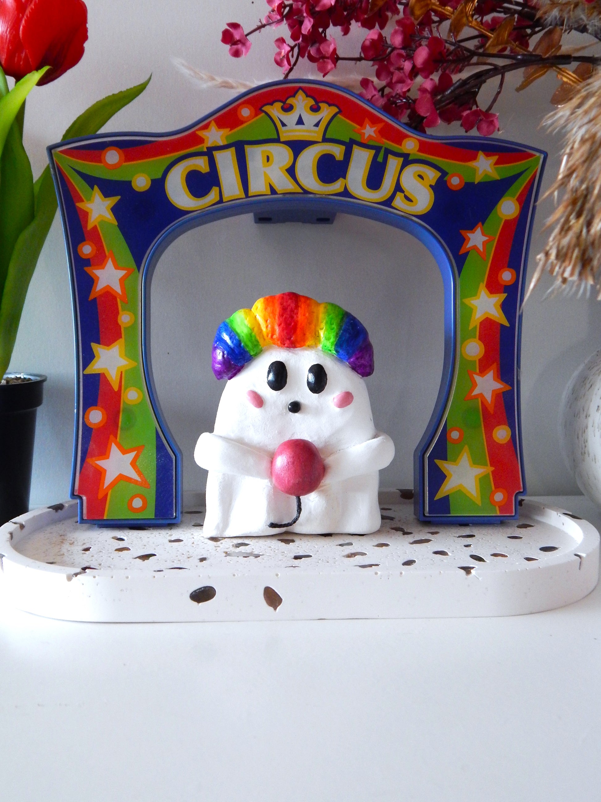 Adorable fantôme entièrement façonné et peint à la main. Avec son ballon trompeur, Henri IV est un petit clown farceur... Vous fera-t-il rire ou vous fera-t-il peur...?