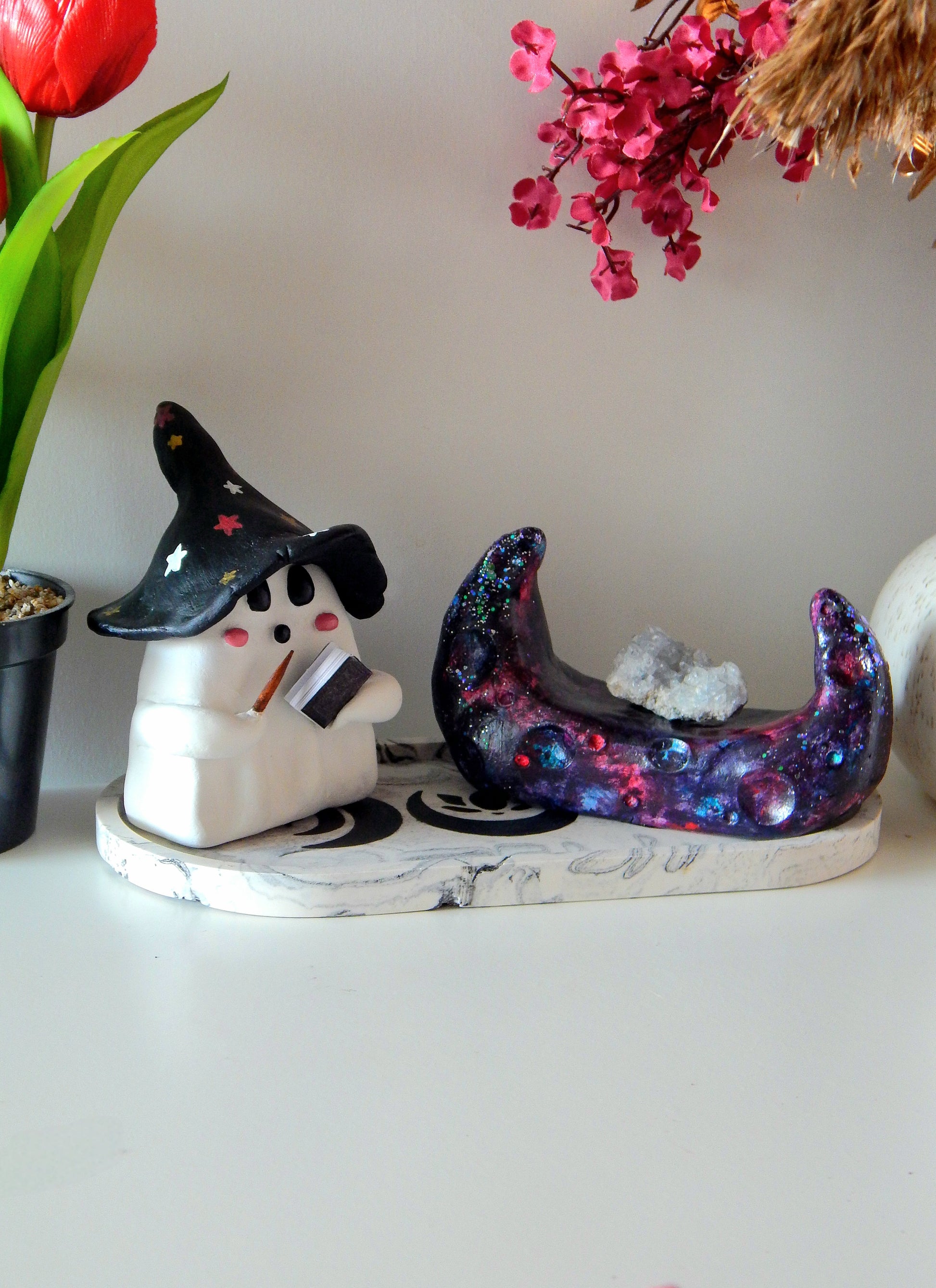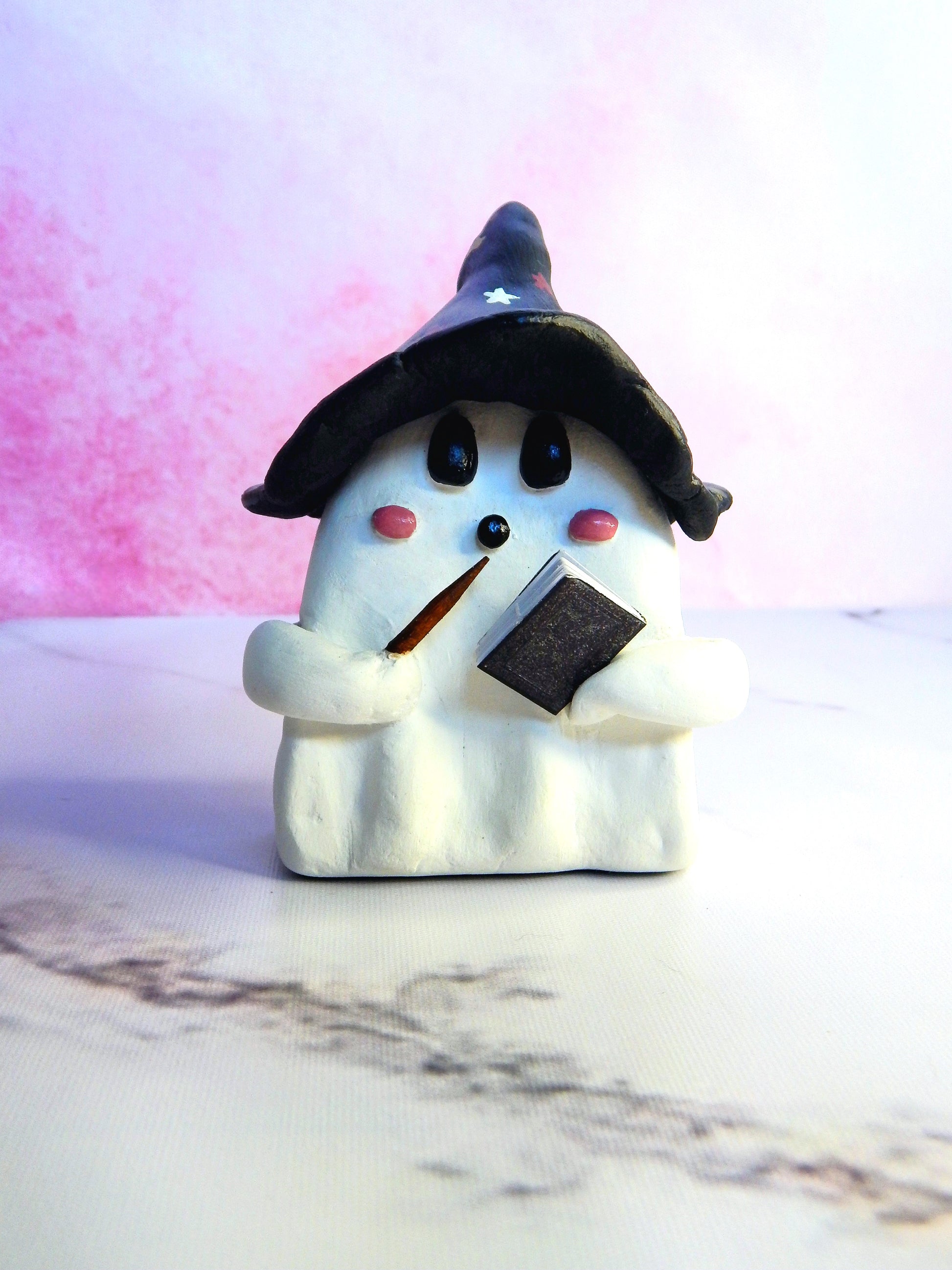 L'adorable fantôme sorcier est bien équipé. Son chapeau son grimoire et sa baguette ne le quitte jamais. McGonagail va-t-il vous lancer un sort envoûtant ?