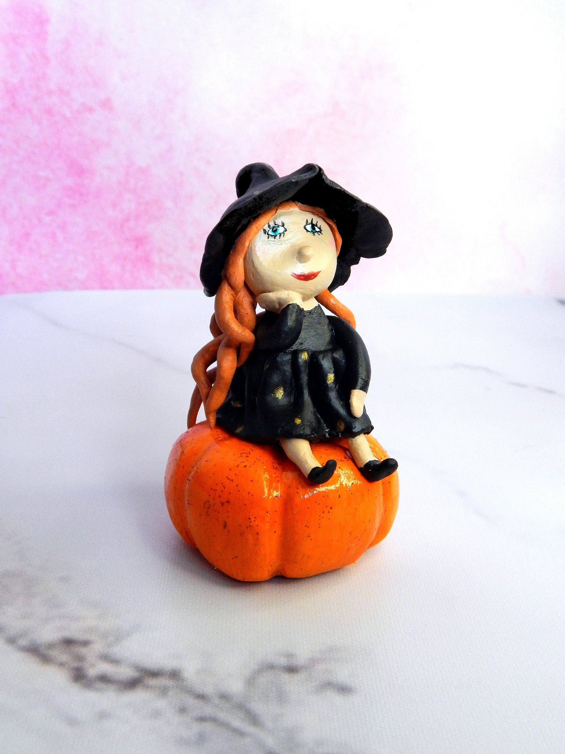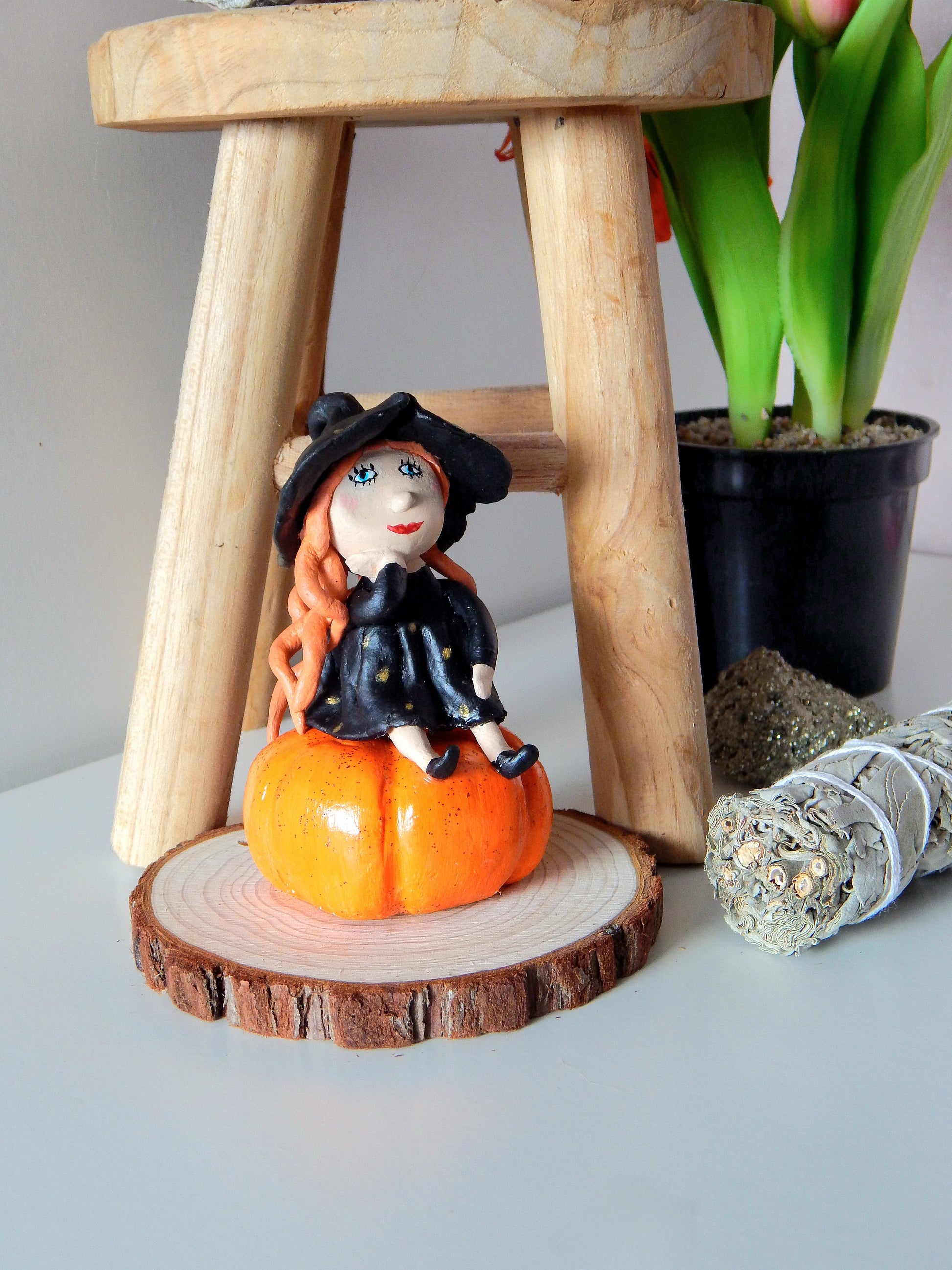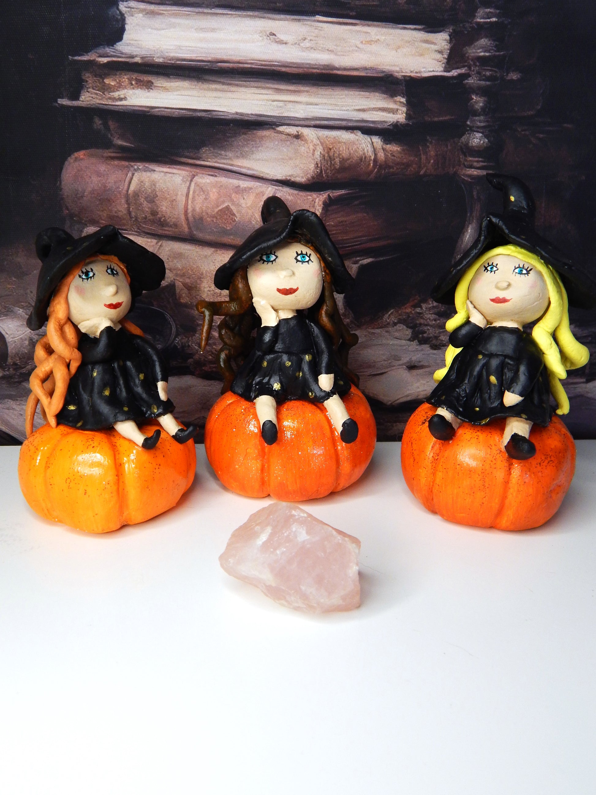 Façonnée et peinte à la main, la sorcière Maya, plus spontanée que sérieuse, aime les fêtes d’automne, les feux de camp, et les envolées de feuilles. Elle parle aux hiboux, fait rire les fantômes, et n’hésite pas à peindre sa citrouille en rose si l’envie lui prend.