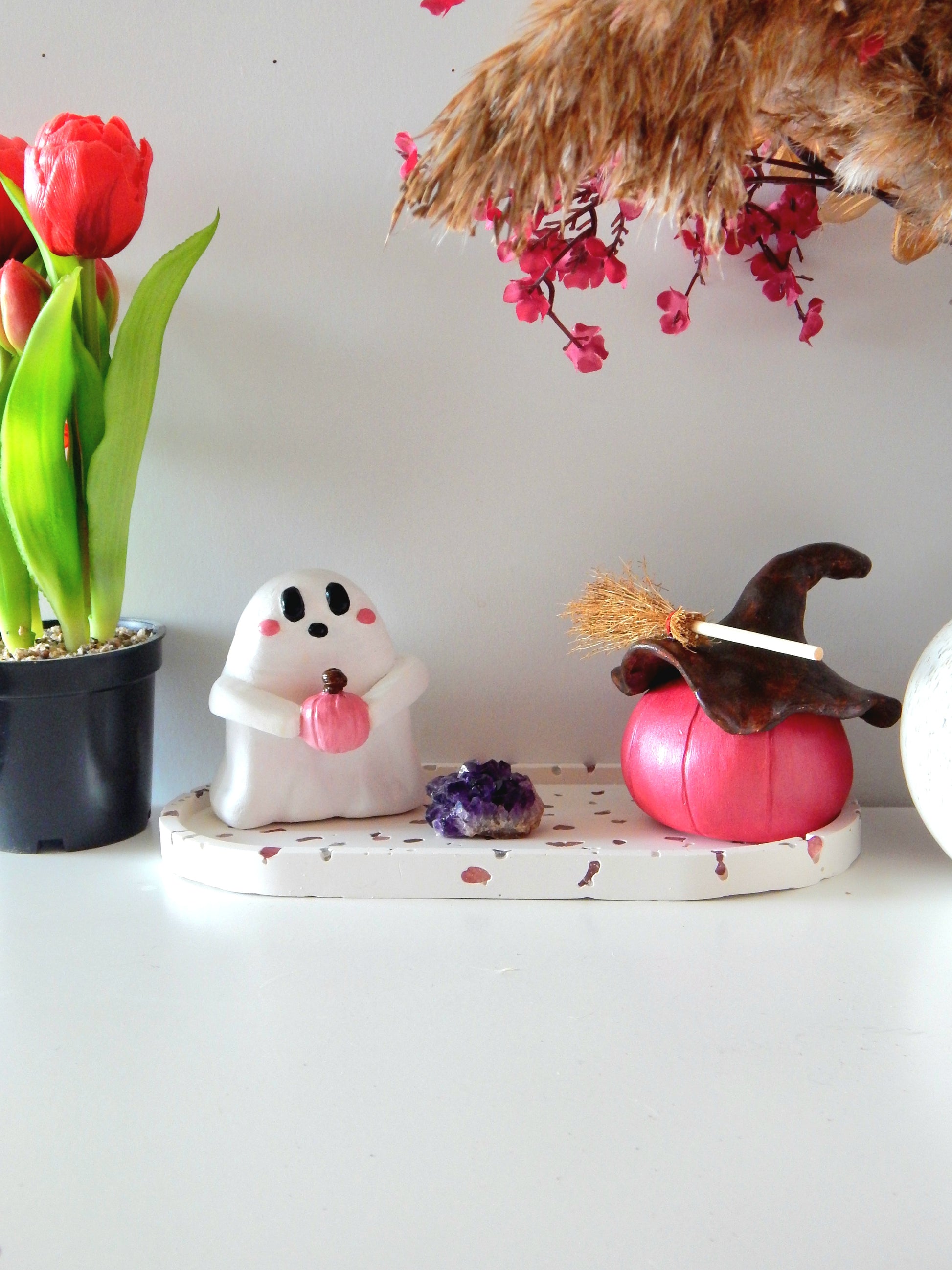 Les 3 adorables fantômes : le clown Henri, le magicien Macgonagail & le citrouillard.