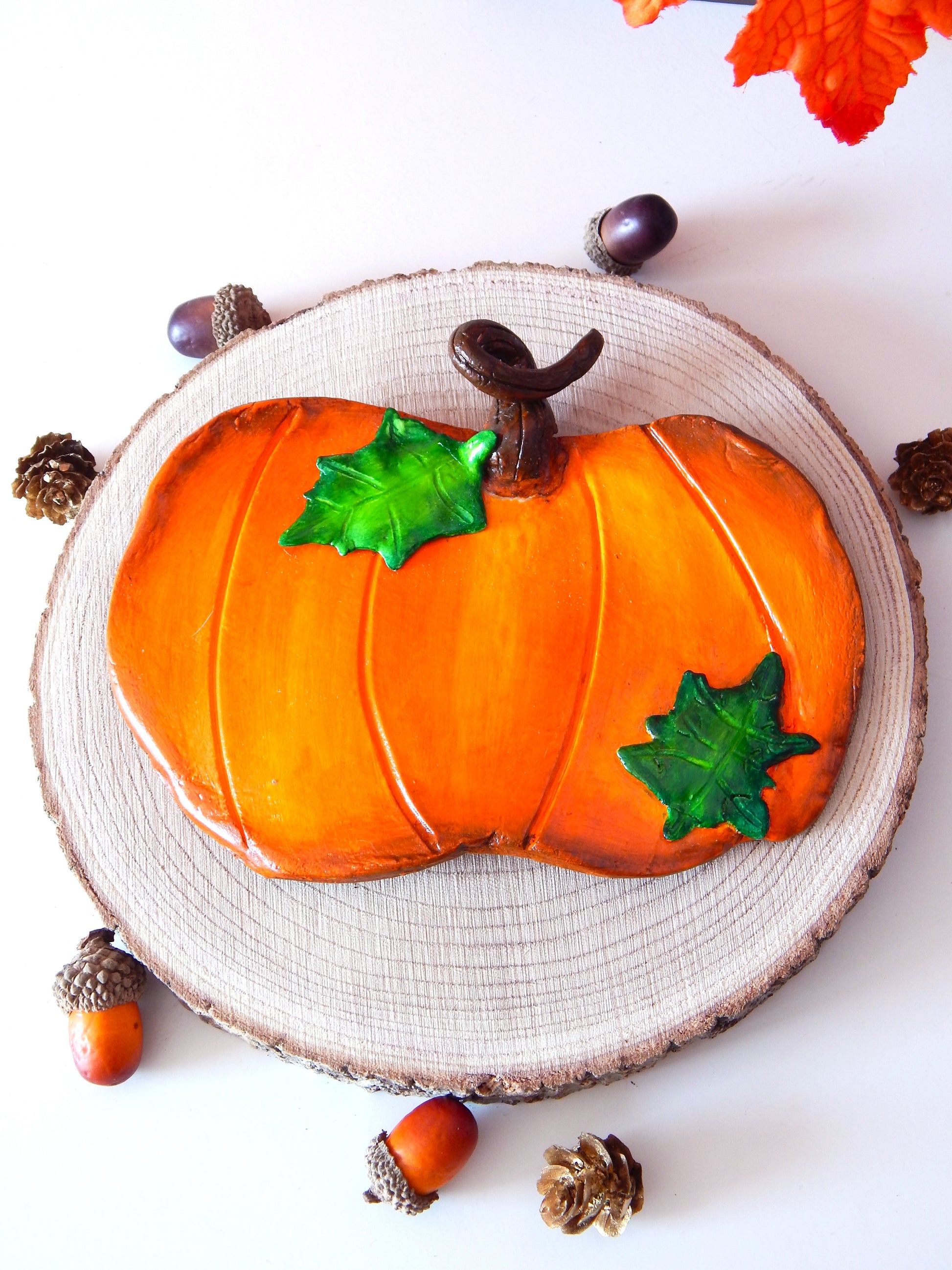 Les 2 plateaux décoratifs en forme de citrouille : le blanc & le orange.